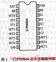 CIPH9804芯片的引脚排列如图1所示。各引脚的功能说明如下: