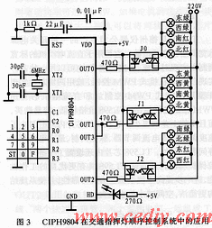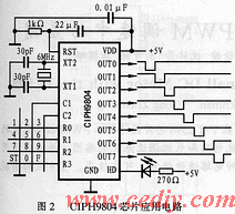 图2是CIPH9804芯片的应用电路,该电路可根据不同的实际生产工艺要求方便地应用于具有时序控制、延时要求的多种控制系统中。